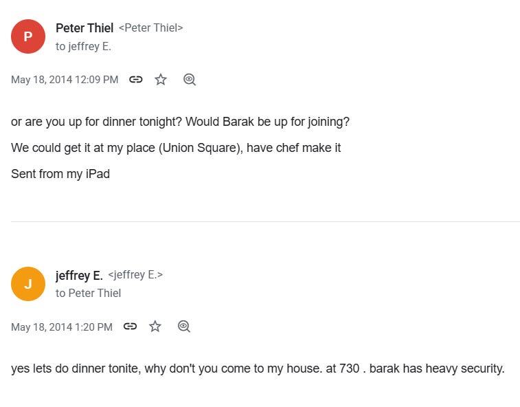 This fascination with immortality and the ideation of an “AI Antichrist” further bleeds into Thiel’s documented relationship with Israel, specifically former prime minister Ehud Barak. It was Epstein who had originally set him up with Barak, writing to Barak that he “...should spend real time with Peter Thiel”, and to Thiel that they “both will enjoy each others’ interests.”